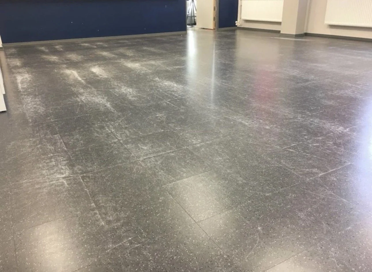 Renoveerimine käimas: parandatud ja lihvitud põrand ning esimene viimistluskiht on peale kantud
